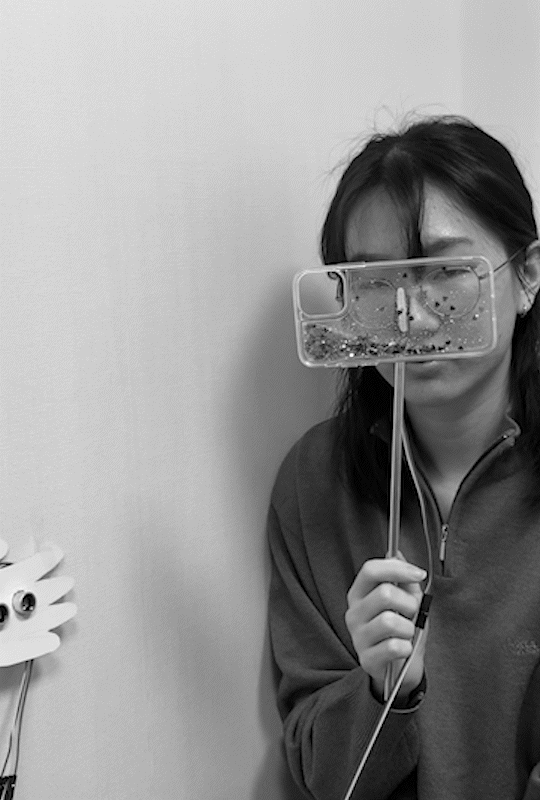 We showed the fluttering moments through the wearable device. But it was hard to adjust the angle with proper fallings, so we needed the impact with broader ouput.